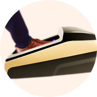 аппарат автоматически надевает и усаживает плёнку на обувь посетителя.